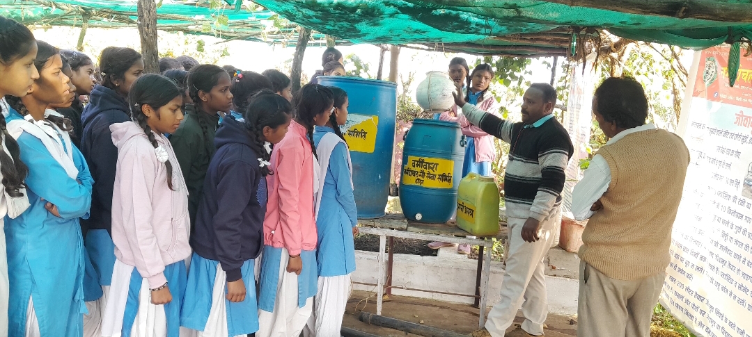 भारतीय किसान संघ के जिलाध्यक्ष व जैविक कृषि विशेषज्ञ ने जैविक फार्म हाउस ग्राम ढोंढ़ा में आज विद्यार्थियों को जीवामृत, केंचुआ खाद प्रायोगिक दिखाकर सिखाया साथ ही जीवामृत मे सूक्ष्म जीवों की मात्रा प्रत्येक 2 घंटे मे दोगुना बढ़ता है।